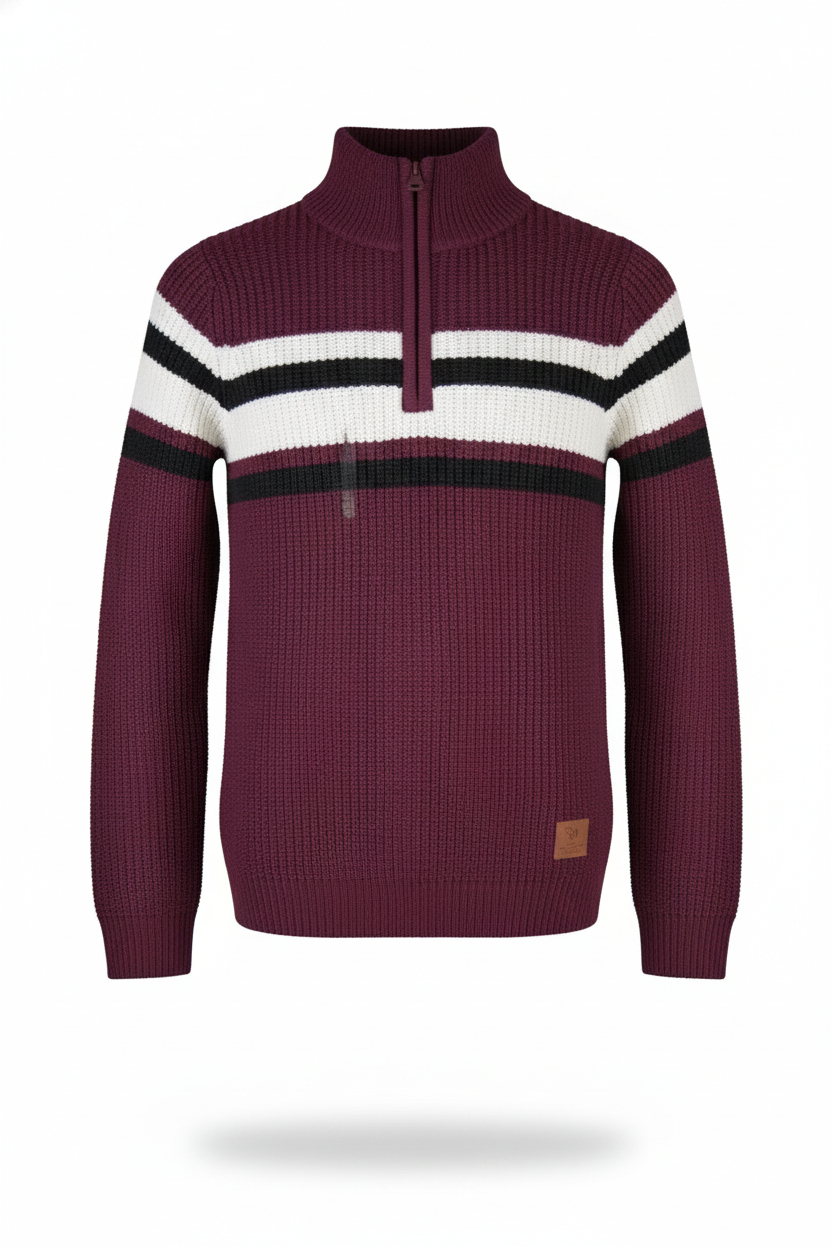 Give your boys the perfect winter comfort with this Boys Short Zip Striped Sweater, made from 100% high-quality acrylic fabric. The stylish striped design and half-zip collar give it a modern look, making it ideal for school, outings, and everyday wear.